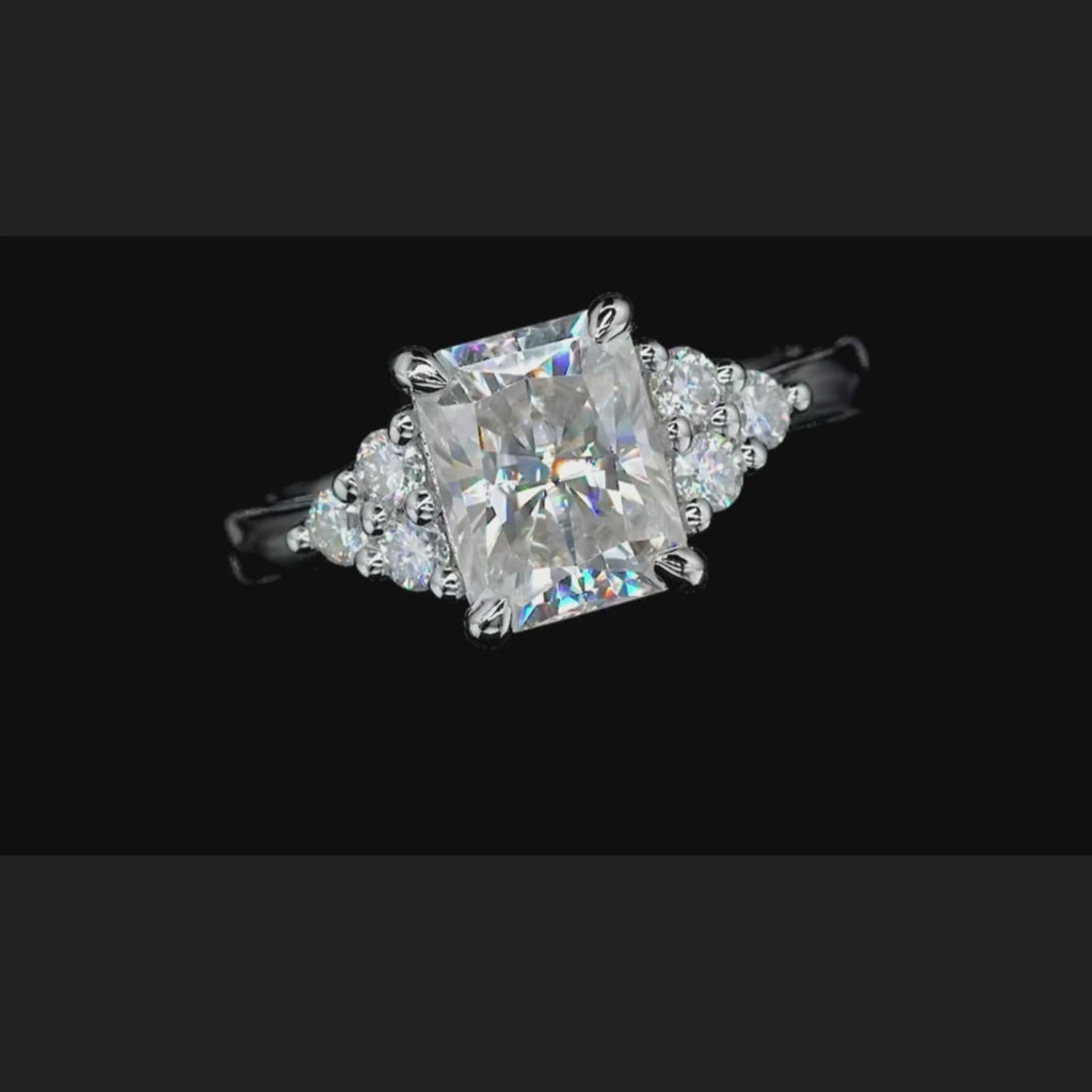 - 3ct radiant-cut Moissanite centerpiece with D-colourless and VVS1 clarity