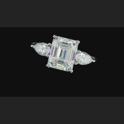 4ct Emerald-Cut Moissanite Engagement Ring | 0.5 Carat Pear-Cut Side Stones