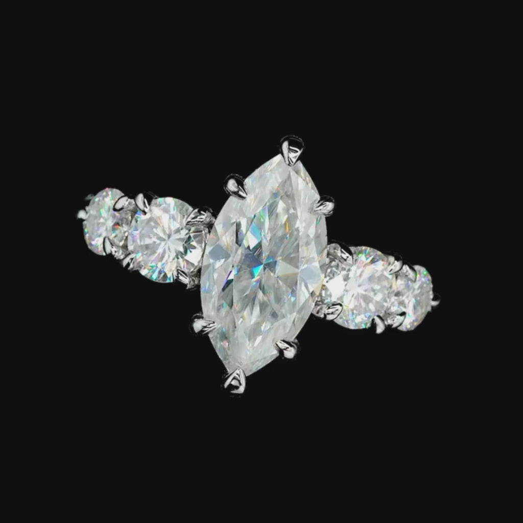 - 3ct marquise-cut Moissanite centrepiece with D-colourless and VVS1 clarity